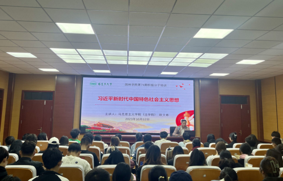 10月12日晚上,园艺与林学学院第4期全体入党积极分子齐聚园林楼三楼报告厅,认真聆听马克思主义学院(法学院)党政办(党建办)主任、马克思主义理论专业负责人欧文希解读习近平新时代中国特色社会主义思想。