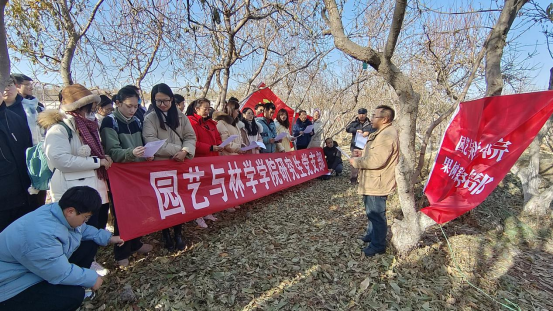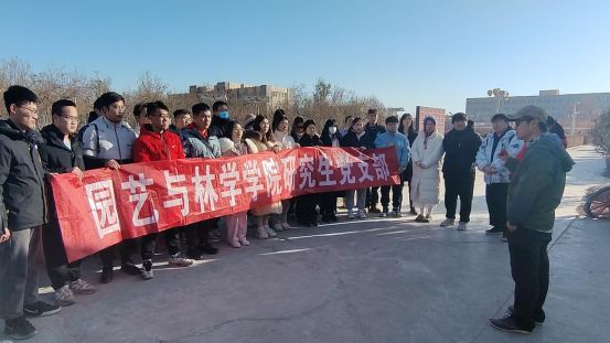 为充分发挥党员先锋模范作用,引导党员以实际行动践行初心使命,12月6日,园艺与林学学院果树系教师党支部联合研究生党支部走进园艺实验站示范基地开展“让党旗在田间地头飘扬”主题党日活动,全体党员同志参加此次活动。