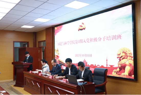 参训学员代表许鹏霖作了表态发言,表示将以饱满的热情投入培训班的学习,不断强化理论武装,发挥模范带头作用,以党员标准要求自己,争取早日在思想和组织上双入党。