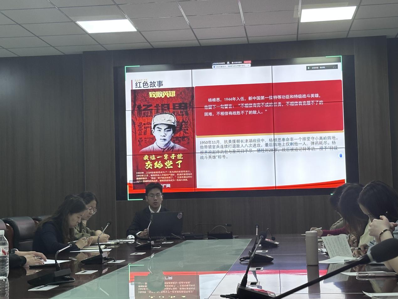 活动伊始,党支部成员怀着崇敬与缅怀的心情,共同回顾了革命先烈为民族独立、人民解放和国家富强抛头颅、洒热血的峥嵘岁月。从烽火连天的革命战争年代,到热火朝天的社会主义建设时期,一代代共产党人前赴后继、舍生忘死的感人事迹,让在场的每一位同志深受触动。随后进入红色故事分享环节,党支部成员与入党积极分子依次上台,结合自身学习感悟,讲述革命先辈坚守信仰、无畏牺牲、无私奉献的英雄事迹,从抗战时期的热血壮举,到和平年代的先锋担当。同志们在静默追思中缅怀先烈功绩,传承先烈精神,将对革命先辈的敬仰与追思转化为坚定理想、锤炼党性的内在动力。