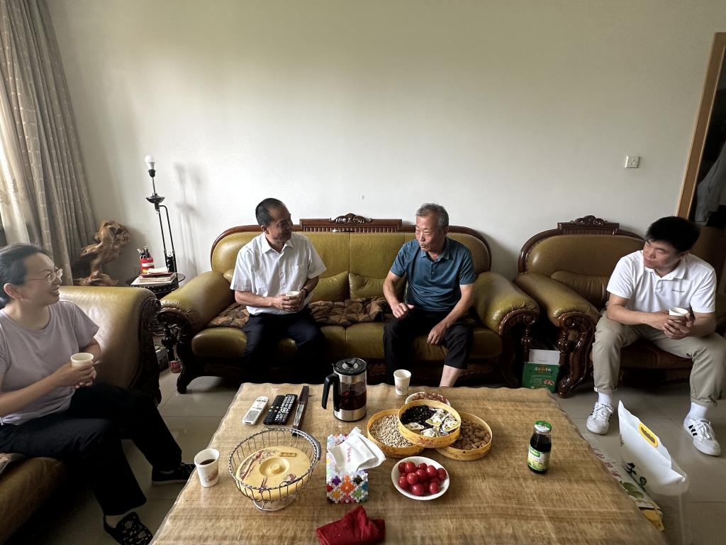 学院慰问小组先后来到闫春雨、刘小平、高疆生、郭图强的家中,蒋学玮亲切地询问了退休老教师们的身体状况、生活情况及所需要的帮助,并感谢他们为学院发展所做出的积极贡献,听取了他们对于学院在学科建设、科学研究、科技服务等方面的意见建议。