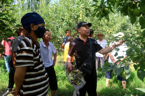 实践团队就香梨夏季修剪、果园生草栽培和病虫害防治技术等调研活动和进行香梨栽培技术指导,为农户讲解此时香梨需要果农供应充足的水分和养分等水肥管理,及时清除果园内的落叶、杂草、患有病虫害的枝条和果实,保持树体间的通风透光以及避免湿度过高等管理要点,为农户答疑解惑。