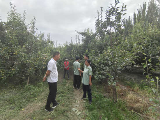 团队成员对香梨产业状况进行调研,为果农们讲解关于梨树的夏季修剪、水肥管理以及病虫害的防治。队员们深入了解当地果园基本状况以及香梨产业现状,解答农户生产种植中遇到的问题,并提出相应解决意见。