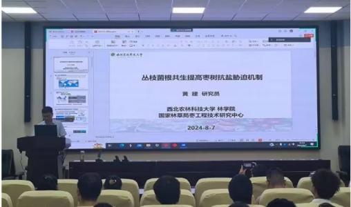 黄建研究员以《丛枝菌根共生提高枣树抗盐胁迫机制》为题,从菌根共生现象入手,阐述了丛枝菌根共生的机理,深入剖析其在枣树抗盐胁迫的机制、应用上,分享期创新成果及研究思路。
