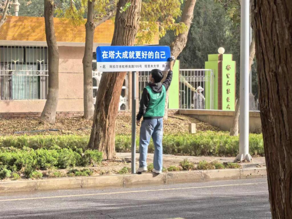 “路牌是校园的‘脸面’,也是师生出行的‘指南针’,能为洁净校园出一份力,我们特别有成就感。”参与活动的志愿者杨佳佩这样说道。此次志愿服务活动,不仅让塔里木大学校园路牌焕然一新,改善了校园环境风貌,更彰显了园艺与林学学院志愿者们的责任担当与奉献精神,传递了“爱护环境、共建家园”的文明理念。
