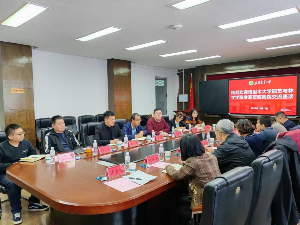 2025年12月17日,塔里木大学园艺与林学学院院长吴翠云、副院长杨振超一行访问新疆农业大学园艺学院。访问由新疆农业大学园艺学院副院长许红军主持,双方相关领导及教师代表参会。