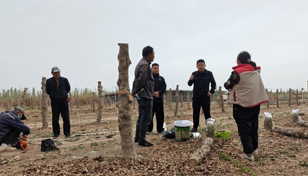 现场指导过程中,冯一峰综合考量沙河镇老旧果园的树体长势、土壤状况以及当地气候特征,针对“高接换优”技术的关键环节,从树体留桩、品种选择、嫁接角度等方面进行详尽讲解,强调了伤口防护、除萌解绑等后续管理的技术要点。