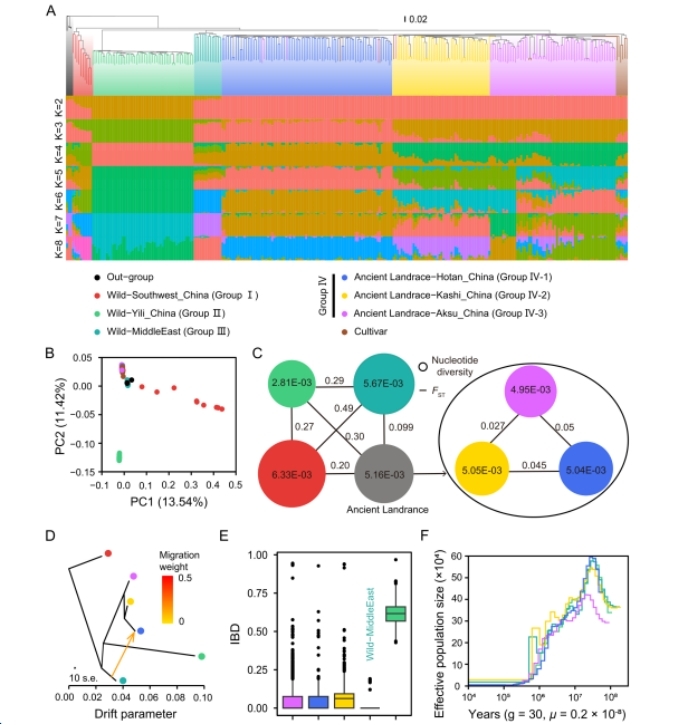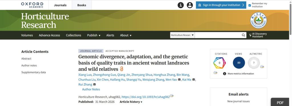 近日,我校园艺与林学学院张锐教授团队在园艺学领域国际顶级学术期刊《Horticulture Research》(中科院一区Top,五年影响因子9.1)上发表了题为《Genomic divergence, adaptation, and the genetic basis of quality traits in ancient walnut landraces and wild relatives》的重要研究论文。新疆农业科学院骆翔研究员,塔里木大学园艺与林学学院郭众仲副教授、金强教授为共同第一作者。塔里木大学园艺与林学学院张锐教授、河南农业大学姚文副教授、新疆维吾尔自治区农业科学院果蔬研究所马凯研究员为共同通讯作者,新疆林业科学院虎海防研究员、山东果树研究所陈新研究员、河南科研平台服务中心张伟强研究员等共同参与该项研究。该研究得到了兵团南疆重点产业创新发展专项、新疆维吾尔自治区天山人才培育计划-青年顶尖科技人才项目、新疆维吾尔自治区天池人才工程-科技创新领军人才项目、国家自然科学基金以及新疆维吾尔自治区重点研发计划项目等项目的资助。