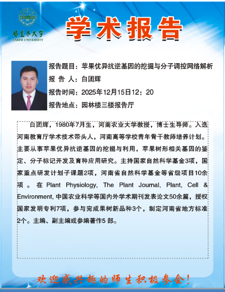 苹果优异抗逆基因的挖掘与分子调控网络解析-白团辉教授